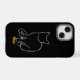 Capa de telefone preta com contorno branco do gato. Personalizar com nome ou mensagem curta.