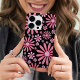 Ele 'nunca é tarde demais para ser hippie! Esta capa de telefone tem flores cor-de-rosa por toda a parte e tem uma cor de fundo variável.
