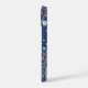 Uma bela capa de telefone boho com flores silvestres em azul claro e laranja sobre um fundo texturizado navy.