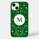 Uma bela Capa de telefone verde esmeralda composta por uma letra escura de monograma verde, padrão de energia da flor branca e ornamentos florais. Uma boa ideia para um aniversário de presente!