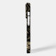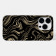 Possui um design de ouro abstrato marmoreado sobre fundo preto.