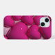 Capa de telefone cardíaca rosa brilhante com efeito 3D.