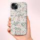 Bonito capas de iphone do Padrão Botânico Floral de Flores Selvagens Monograma. Este design de tendências florais bonito apresenta flores botânicas na moda. Personalize esta capa de telefone personalizada com o seu próprio monograma inicial.