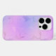 Apresenta um design de padrão de mármore, em tons rosa e roxo.