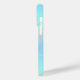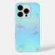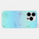 Apresenta um design de padrão de mármore, em tons de turquesa.