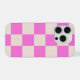 Uma capa de telefone xadrez rosa e bege ousada com um visual moderno e divertido. O contraste marcante adiciona estilo e personalidade, mantendo seu dispositivo chique e na moda.