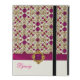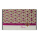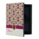 Gabinete iPad 2/3/4 elegante, com gráficos de uma cor rosa orquídea e um padrão de tom dourado. Um marfim sólido na parte inferior, com gráficos de uma fita orquídea com aspecto de uma fita, rosa e dourada. Personalize o texto cor-de-rosa para você mesmo ou como uma ideia de presente de vidro.