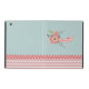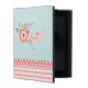 Mala bonito no estilo de fólio iPad 2/3/4, com um pequeno padrão de bolinhas azul e marrom, na parte superior do gabinete, e um padrão de faixa rosa e branca e padrão de bolinhas na parte inferior. Gráficos doces de um banner floral de coral decoram a parte superior frontal. Personalize o texto, na faixa, para você mesmo ou como uma ideia encantadora de presente para ela.
