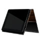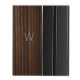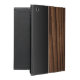Mala no estilo de fólio iPad bonito, com gráficos de uma aparência de grãos de madeira marrom, escorrendo no meio do gabinete. Um olhar metálico preto, nas bordas frontais e traseiras do gabinete, tem uma banda de tom prateado como borda. Personalize o monograma de uma letra, na frente, para atender às suas necessidades. ideia de presente de excelente