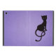 A caixa elegante do ar do iPad do gato com uma ilustração bonita de um gato preto mau gracioso com incandescência eyes em um relógio de noite no embaçamento roxo escuro.
