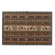 Legal tom castanho e bege com sotaques brancos e azuis, padrão geométrico étnico africano com figura de girafa.