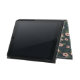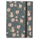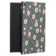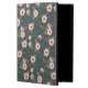 O gabinete iPad com padrão floral chic apresenta flores rosa-coral e folhas verdes exuberantes em um fundo azul-da-meia-noite enfumaçado profundo.