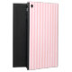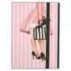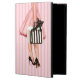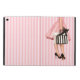 Compra à moda da senhora com o filhote de cachorro do buldogue francês no fundo cor-de-rosa stripy. Pintado pelo artista Maryline Cazenave.