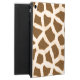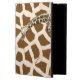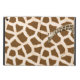 Mala divertida iPad Air, com suporte integrado, e gráficos de um padrão de pele de girafa e marrom. Uma foto graficamente melhorada da cabeça e pescoço de uma girafa se estende pela frente do gabinete. O texto castanho na frente está pronto para personalizar para você mesmo ou como uma ideia de presente de excelente.
