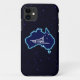 Uma simples silhueta branca de um trenó de cão e a Cruz do Sul sobrepuseram-se a um mapa azul da Austrália. Tudo num fundo estelar. Quem teria mordido? Mudando de cabeça para baixo em Oz. O trenó de cachorro é bastante popular na Austrália. No Monte Hotham em Victoria há uma grande corrida todos os anos.
