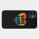 Esta trabalho de arte apresenta a frase "Amor é Amor" desenhada dentro de um coraçao arco-íris colorido.