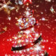 Uma design vibrante de capa de telefone com uma espumante árvore de Natal enfeitada com estrelas cintilantes. A árvore, esboçada em branco, se posiciona contra um rico fundo vermelho, criando uma atmosfera festiva. A estrela sobre a árvore brilha intensamente.