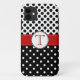 Um B&W bonito, ultra chique personalizou a capa de telefone para senhoras elegantes. Personalize-o com a primeira letra do seu primeira ou estilo do monograma do sobrenome para um toque de VOCÊ. Esta capa de telefone tem um olho travar, pontos & teste padrão corajoso dos pontos com polkadots brancos minúsculos no fundo preto na parte inferior, e os pontos pretos reversos no branco na parte superior! Um vermelho brilhante costurou a fita da borda através do meio e um Tag circular rodeado dobro divide no centro os padrões reversos do polkadot. Moderno e clássico ao mesmo tempo, os polkadots estão sempre no estilo! Outros cores e padrões disponíveis na loja.