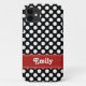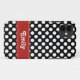 Este design preto e branco feito sob encomenda das bolinhas com um multi teste padrão de ponto pode ser personalizado com seu nome no design costurado vermelho da fita. Isto faz um presente bonito e à moda para mulheres, menina adolescente ou toda a feminino. © Chrissy H. Estúdio dos trabalhos de arte, LLC. Todos os direitos reservados.