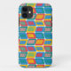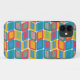 Essa capa de telefone tem um design moderno do século médio de cores brilhantes que faz retângulos arredondados com outros retângulos dentro formados por uma coleção de linhas.