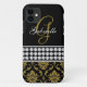 Este exemplo monogrammed da case mate do damasco iPhone5 do preto e do ouro tem uma foto deste design encaixado no cobrir plástico duro. O design é compo de um preto e uma cor damasco do ouro, um impressão de três fileiras dos diamantes brancos em uma listra e uma área onde você pode adicionar sua inicial do nome e do monograma em pias batismais lindos do roteiro. Este cobrir do caso do iPhone 5 é a maneira perfeita de accessorize seu iPhone 5. seja à moda e feminino tudo ao mesmo tempo. Design por Elke Clarke©2012. Gráficos licenciados para o uso. Desenhista do contato para outras cores do fundo.