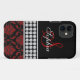 Esta caixa preta e vermelha monogrammed da case mate do damasco iPhone5 tem uma foto deste design encaixado no cobrir plástico duro. O design é compo de uma cor damasco floral, de um impressão de três fileiras dos diamantes brancos em uma listra e de uma área onde você possa adicionar sua inicial do nome e do monograma em pias batismais lindos do roteiro. Este cobrir do caso do iPhone 5 é a maneira perfeita de accessorize seu iPhone 5. seja à moda e feminino tudo ao mesmo tempo. Design por Elke Clarke©2012. Gráficos licenciados para o uso. Desenhista do contato para outras cores do fundo.