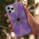 Esta design de flor de mandala funky apresenta roxo, rosa e azul no estilo de desenho animado. Visuais geométricos triplos para o hippie moderno ou amante de cores vibrantes!