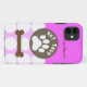 Fundo cor-de-rosa das bolinhas do caso do iPhone 5 da tecnologia do veterinário com design circular do "TECNOLOGIA VETERINÁRIO" com design do osso do impressão e de cão da pata. Igualmente faz um grande presente da graduação da tecnologia do veterinário. *Customizable, adicione seu nome à parte dianteira)
