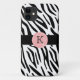 O caso Trendy monogramas zebra print iPhone 5 apresenta listras de zebra pretas e uma borda preta de destaque com um vôlei cor-de-rosa pastel para o seu início. Mostre sua personalidade com este caso do iPhone 5, moderno e divertido. Faz um presente de excelente para todas as ocasiões. Clique em "Personalizar!" para alterar a cor do plano de fundo, a cor do texto, o tamanho do texto, o estilo da fonte e muito mais!