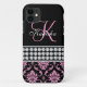Capa Para iPhone 11 Caso do Monogram Name Black Pink Damask iPhone 5