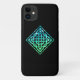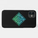 Um iPhone 11 Caso de um design de diamante celta azul-esverdeado com nó cinético contra um fundo preto.