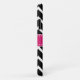 Capa Para iPhone 11 Chevon Preto de Monograma com Flor Rosa Quente