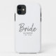 Proteja o seu telefone com esta Cinza Branca de Script Moderno Personalizada iPhone 11. Ele foi projetado com "noiva" em letras modernas de script escovado de cinzas. Personalizado com o nome da noiva e estabelecido o ano do casamento em letras simples. Fundo branco personalizável.