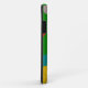 Esta capa de telefone tem uma design de Natal de uma colagem de uma árvore de Natal, um ornamento, uma estocagem, um presente, e um rapaz de pão de gengibre.