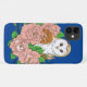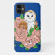 Capa Para iPhone 11 Coruja-Celeiro Azul Flores Rosa