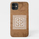 Mala iPhone / iPad com padrão grego (Meander), design branco elegante com borda chave para corresponder no fundo marrom do estilo Grécia antigo. Esta design do famoso e popular padrão grego da linha contínua pode ser editada para mudar sua cor, se você quiser.