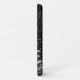 Capinha de smartphone preto com uma árvore de Natal branca estilizada e detalhes de estrela em um fundo nevado e cintilante. Design moderno e minimalista de Natal, perfeito como presente sazonal ou acessório festivo.
