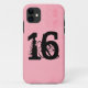 Capa de telefone cor-de-rosa com 16 impressa no centro.