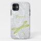 Proteja o seu iPhone 11 com um iPhone 11 Personalizado do Dragonfly Verde. Design de caixa apresenta uma libélula colorida, uma vinha floral branca macia contra um fundo de damasco de cinza claro com uma área para personalizar com seu nome. Itens de presentes adicionais disponíveis com este design, bem como uma variedade de cores. Personalize você mesmo ou faça um presente de excelente.