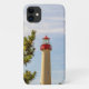 Lâmpada do Farol Cabo de maio nas costas da Baía de Delaware contra céus azuis com espaço para cópia.