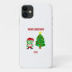 Aqui vocês podem admirar um dos desenhos de Natal, eu chamo, "FrankenCheese de Natal", FrankenCheese vestido de Papai noel, com uma árvore de Natal decorada, o texto diz, "Feliz Natal". Agora você pode pedir, "FrankenCheese de Natal", neste caso do iPhone 11 da Apple para desejar a alguém um Feliz Natal."