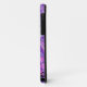 Um design de fundo roxo colorido e cor-de-rosa, com a silhueta preta de uma cabeça e pescoço de girafas.