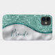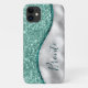 Capa de telefone personalizada elegante, maravilhosa, elegante, com horta, turquesa, verde esmeralda e design prata. Personalize com seu próprio nome.