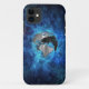 Globo brilhante da terra do metal do quadro do fio com fundo azul da nebulosa do espaço.