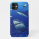 Caso IPhone 11 mostrado com uma impressão de foto de tubarões no mar profundo. Personalizar ou comprar como está. Imagem do stock