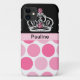 iPhone impresso de pedra preciosa 5 caixas com bling feminino cor-de-rosa de pedra preciosa impressas no caso, em uma coroa real da monarquia da rainha, e no espaço que do monograma você pode personalizar com suas nome ou iniciais. Projetado para mulheres ou meninas e protegerá seu telefone em uma maneira à moda. As cores incluem o roxo, preto e branco.
