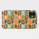 Esta capa de telefone tem um design moderno século médio de retângulos arredondados inclinados para o lado com retângulos inclinados dentro feitos de linhas todas em cores da década de 1970.