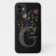 Design apresenta Monograma mais Flores num Design Floral. Inicial é a letra G. Capa de telefone preta.