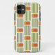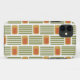 Esta capa de telefone tem um design moderno do século médio feito de cinco linhas verdes e um retângulo dourado arredondado com um retângulo laranja arredondado repetido na design.