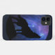 Silhueta de lobo uivando preto no fundo do céu noturno celestial